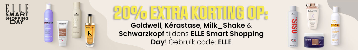 Het is zover! Vandaag is het ELLE Smart Shopping Day! Scoor nu jouw favoriete haarmerken van Goldwell, Kérastase, Milk_Shake & Schwarzkopf met exclusieve korting. Upgrade je routine voor de beste prijs. Wees er snel bij, want op = op!