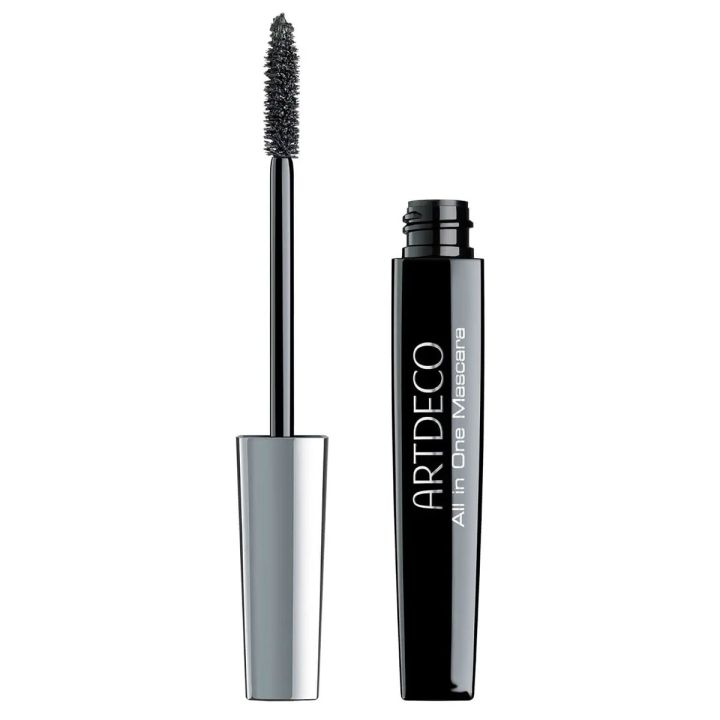 Artdeco All-in One Mascara geeft prachtige wimpers, voor welke gelegenheid dan ook! Deze mascara staat elke uitdaging aan en zorgt voor lange, volumineuze wimpers met een prachtige krul. Hij stylet de wimpers perfect door ze voorzichtig te omhullen, waardoor ze voller en langer lijken. De speciale mascaraborstel is gemaakt door twee verschillende borstels te combineren, waardoor de vezels in elkaar haken. De dichtere gebieden zijn ideaal om de wimpers te scheiden, terwijl de gebieden met minder vezels kleur en volume toevoegen. Maak je geen zorgen over uitlopen of schilferen gedurende de dag - de formule is veegvast en extra langhoudend! De All-in One Mascara is ook heerlijk voedend. Carnaubawas uit de carnaubapalm verzorgt de wimpers en houdt ze zacht en flexibel. Alles-in-één Mascara - voor serieus verslavende wimpers.