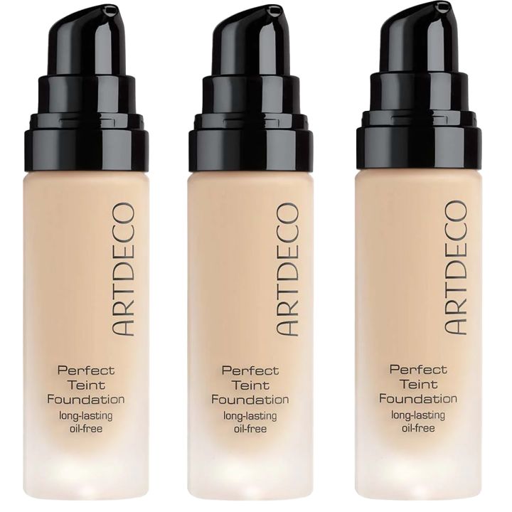 Artdeco - Perfect Teint Foundation heeft een extreem lichtgewicht vloeibare formule en is niet alleen olievrij, maar bevat ook extra fijne poederdeeltjes om overtollige oliën te absorberen. Voor een lichtgewicht matte afwerking! De formule smelt in de huid voor een gelijkmatige en natuurlijke uitstraling. Zeg maar dag tegen het maskerachtige effect! Hoewel de foundation zeer langhoudend is, is de formule met medium tot volledige dekking nauwelijks voelbaar op de huid. Kleine vlekjes en huidimperfecties kunnen worden verborgen en het hoge watergehalte laat de huid verfrist aanvoelen. Bevat ook ingrediënten om de huid nieuw leven in te blazen. Ze hebben een hydraterend en voedend effect, kalmeren geïrriteerde huid en perzikbloesemextract helpt de huid te beschermen tegen schadelijke invloeden van buitenaf. De perfecte allround foundation!