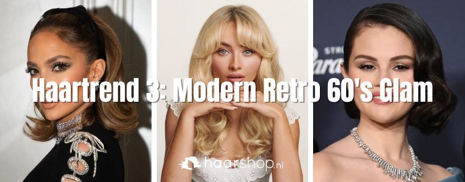 Hier zie je een combinatie van klassieke allure en hedendaagse flair: volumineuze blow-outs, zachte glam waves én de terugkeer van de zij-scheiding. De look is geïnspireerd op de retro glamour van de jaren ’60, maar dan lichter en toegankelijker voor nu.