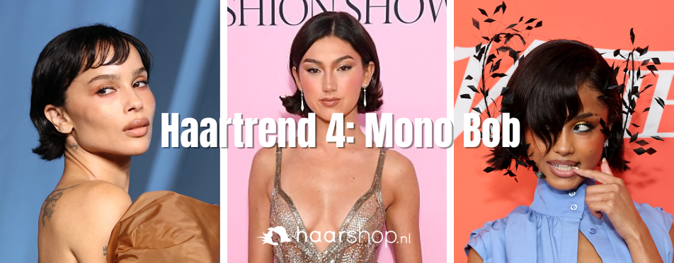 De Mono Bob (ook wel ultra-short bob) is hét powerkapsel van dit seizoen. Denk aan een rechte, kaaklange bob met scherpe lijnen en een gladde, glanzende finish. Deze trend straalt minimalistische luxe uit: simpel in vorm, maar met maximaal effect.