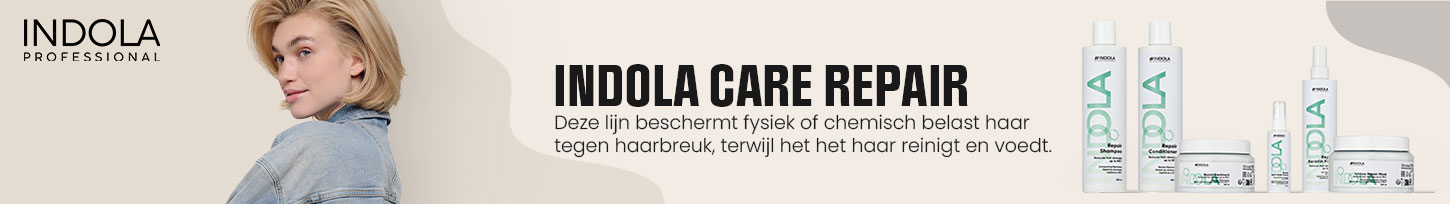 De Indola Care Repair range bestaat uit producten die fysiek of chemisch belast haar beschermen tegen haarbreuk tot 95%*. De luxe formule reinigt en voedt het haar, en vergemakkelijkt het kammen zonder dat het haar verzwaard wordt.