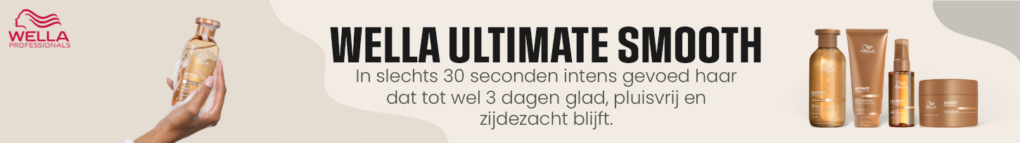 Wella Ultimate Smooth is dé innovatieve haarverzorgingslijn van Wella Professionals, speciaal ontworpen om weerbarstig, droog en pluizig haar te transformeren naar zijdezachte, glanzende lokken. Met krachtige ingrediënten zoals Squalaan en Omega-9 biedt deze lijn diepe voeding en herstel, zowel van binnen als van buiten. Van shampoo en conditioner tot haarmasker en Miracle Oil Serum: de Ultimate Smooth lijn zorgt voor een complete verzorgingsroutine waarmee je haar straalt van gezondheid en zachtheid!