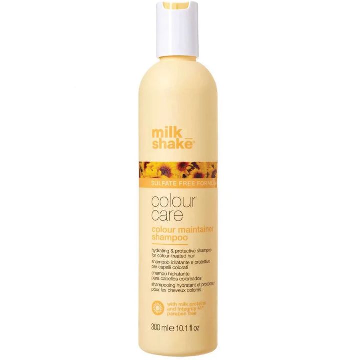 Milk Shake Colour Maintainer Shampoo is een milde, verzorgende shampoo speciaal voor gekleurd haar. Dankzij melkproteïnen en het unieke Integrity 41®-complex reinigt deze shampoo je lokken zonder kleur te vervagen, terwijl hij intens hydrateert en voedt. Het resultaat: glanzend, soepel haar met een frisse, levendige kleur en een zachte geur die het wasmoment extra aangenaam maakt.
