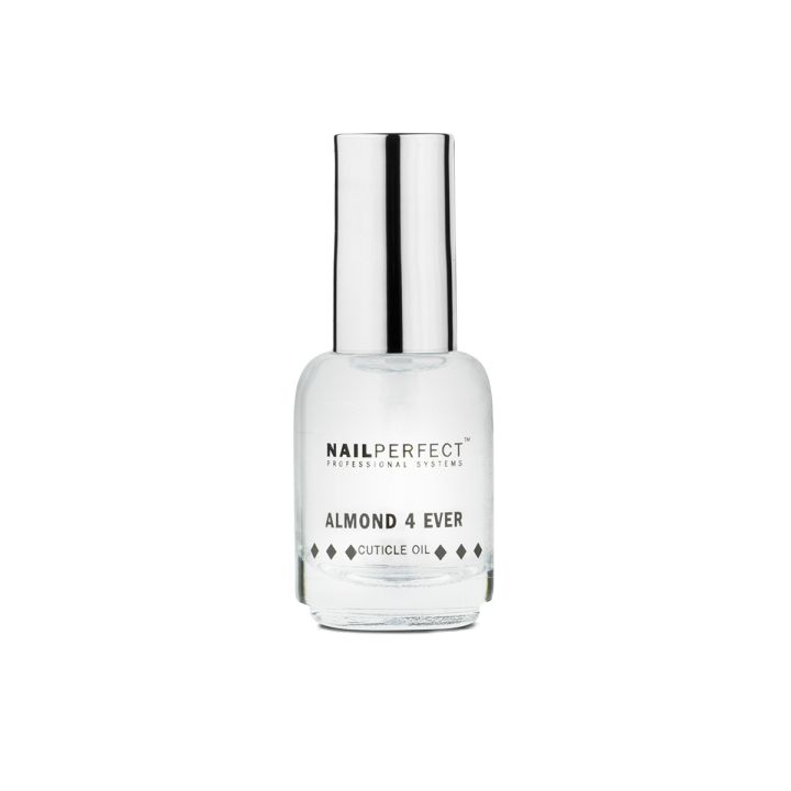 Nail Perfect Almond 4 Ever 5 ml perfect voor het hydrateren van de droge nagelriem met een heerlijke almond geur! Deze olie is perfect om te gebruiken na de behandeling en voor thuis. Met de heerlijke almond geur is dit een aangename olie die je handen lekker laat ruiken. Je nagelriem wordt verzorgd zodat je nagels gezond blijven en deze gezond blijven groeien. Ook kan deze olie gebruikt worden voor pedicures. Voor het beste resultaat, breng twee keer per dag aan.