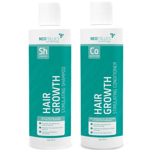 - Spoel goed uit en breng de Neofollics Hair Growth Stimulating Conditioner aan.
