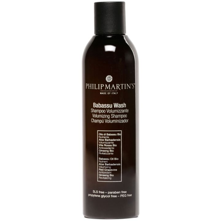 De Philip Martin's Babassu Wash 200 ml shampoo is ontwikkeld voor droog en weerbarstig haar. De shampoo bevat natuurlijke ingrediënten zoals esdoornsap, ginseng, lavendel en pinus. Het haar wordt zacht, glanzend en schoon en de elasticiteit van het haar wordt hersteld.