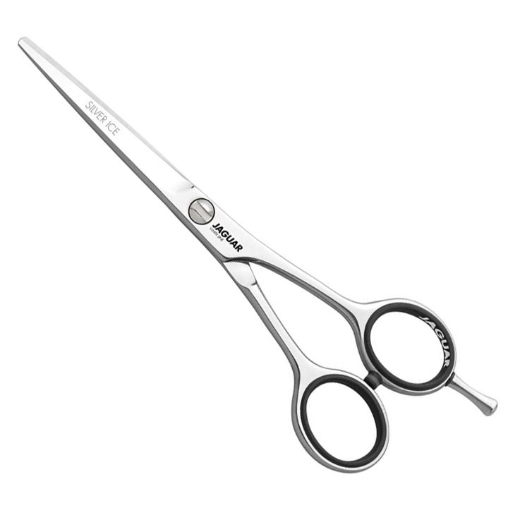 Professionele kappersschaar van Jaguar Sölingen met een symmetrisch design. Dat wil zeggen dat de ogen van de schaar direct naast elkaar staan als de schaar in gesloten houding is.