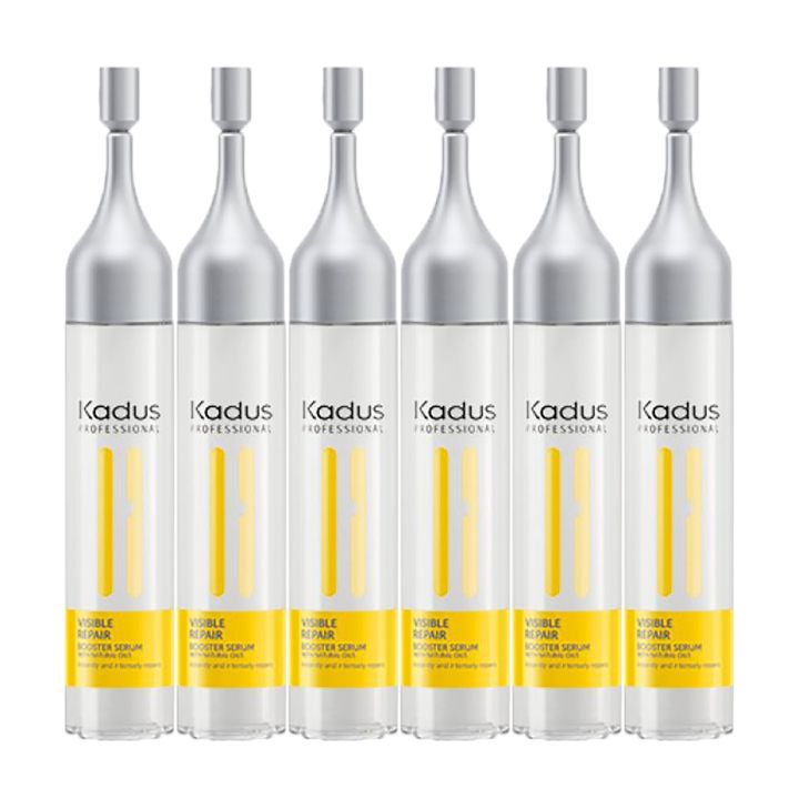 Haar is niet altijd overal evenveel beschadigd. Sommige plekken vragen meer aandacht, bijvoorbeeld omdat de stijltang er net te lang op heeft gezeten. Speciaal daarvoor kun je het Kadus Visible Repair Booster Serum gebruiken! Dit serum breng je aan op extra beschadigde haarlokken. Vervolgens breng je het masker aan en je zult merken dat je haar een ongekende herstel-boost krijgt!