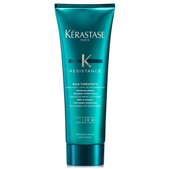 Kérastase Résistance Bain Thérapiste is een shampoo die zeer beschadigd haar nieuw leven in blaast! Met de unieke gel-textuur wordt de haarvezel van poreus haar herstelt tijdens het reinigen van het haar. De haarvezel wordt enerzijds voorzichtig gereinigd, anderzijds doeltreffend verzorgd. Gespleten haarpunten worden tegengegaan, j maar krijgt ook een heel nieuw leven in geblazen!