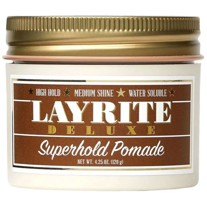 Layrite Superhold Pomade op waterbasis waarmee je normaal, dik en zelfs krullerig haar in model houdt.