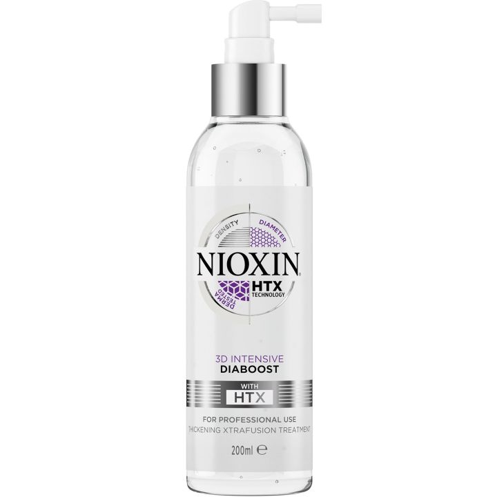 Met de Nioxin Diaboost neemt de dikte van elke individuele haar toe, voor dikker, voller uitziend haar. Nioxin 3D Intensive Care Diaboost zorgt onmiddellijk voor dikker, voller uitziend haar. Het haar wordt beter handelbaar, voller en merkbaar dikker na slechts één keer gebruiken. Dit laatste is vooral te danken aan de HTX technologie, die ingrediënten met merkbare huidverzorgingsvoordelen bevat zoals cafeïne, panthenol en niacinamide.