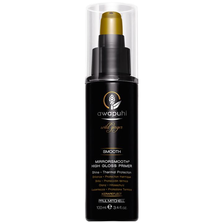 Paul Mitchell - Awapuhi Wild Ginger - MirrorSmooth High Gloss Primer een glansgevende primer uit de Awapuhi Wild Ginger-lijn van Paul Mitchell die het haar verzacht, pluis reduceert en voorbereidt op styling voor een spiegelende, hoogglansfinish.