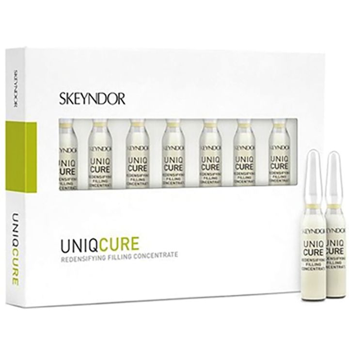 Skeyndor Uniqcure Redensifying Filling Concentrate (7 x 2ml) verstevigt de huid van binnenuit. De formule stimuleert, vult en verjongt de huid van binnenuit zodat deze gladder en stralender wordt. Dit huidserum is perfect als je wil dat je huid er jonger en voller uit komt te zien. De actieve ingrediënten zijn gebaseerd op professionele correctieve medicijnen.