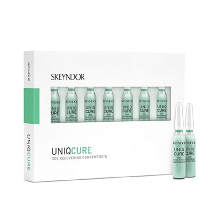 De Skeyndor Uniqcure S.O.S. Recovery Concentrate 7x2 ml is een huid kalmerende ampul. Dit rijke serum verbetert de huiddichtheid, stimuleert krachtig de huidcellen, vervult en verjongt de huid van binnenuit. Geïnspireerd op de corrigerende esthetische geneeskunde. Herstelt het gezichtsvolume.