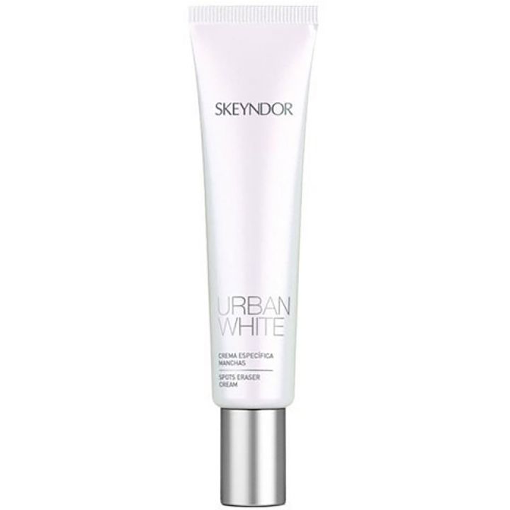 Skeyndor Urban White Spots Eraser Cream 15 ml is een crème voor het vervagen van pigmentvlekken en huidverkleuringen. Dit beautyproduct is geschikt voor alle huidtypes. Deze crème bevat verblekende ingrediënten, die pigmentvlekken en huidverkleuringen zichtbaar verbleken voor een mooie egale teint. Breng deze crème alleen aan op de te behandelen vlekken.