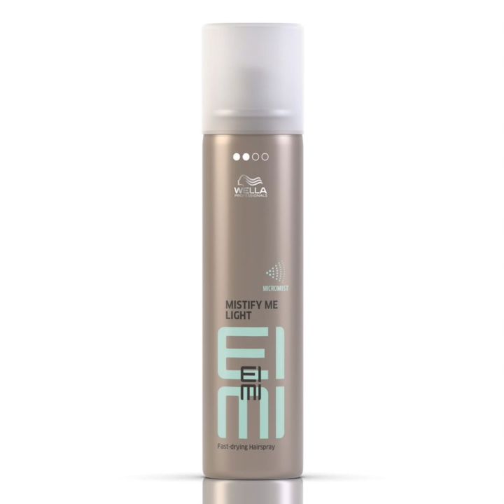 Wella EIMI Mistify Me Light is een lichtgewicht en sneldrogende light hold. Dankzij de ultra fijne verneveling krijg je een zeer gelijkmatige verdeling over het haar. De MICROMIST™ technologie creëert een buitengewoon fijne verneveling bij de spuitmond, waardoor de spray nog beter wordt verdeeld door het haar. Het voordeel hiervan? Een gelijkmatig verdeeld stylingproduct zorgt voor de beste fixatie en meest natuurlijke finish!