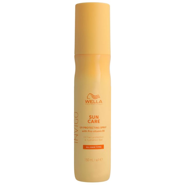 Wella Invigo Sun UV Haarkleurbeschermingsspray is een hoogwaardige leave-in spray met UV-bescherming om je haarkleur tijdens zonnige periodes te beschermen. Bescherm jouw haar zoals je je huid beschermt. UV-stralen, oceaanwind, chloor en zout kunnen het haaroppervlak beschadigen en het droog, dof en moeilijk handelbaar maken. Smeer deze zomer niet alleen zonnebrand op je huid, maar denk ook aan je haar. Deze lijn is verrijkt met het innovatieve SUN-Blend™.