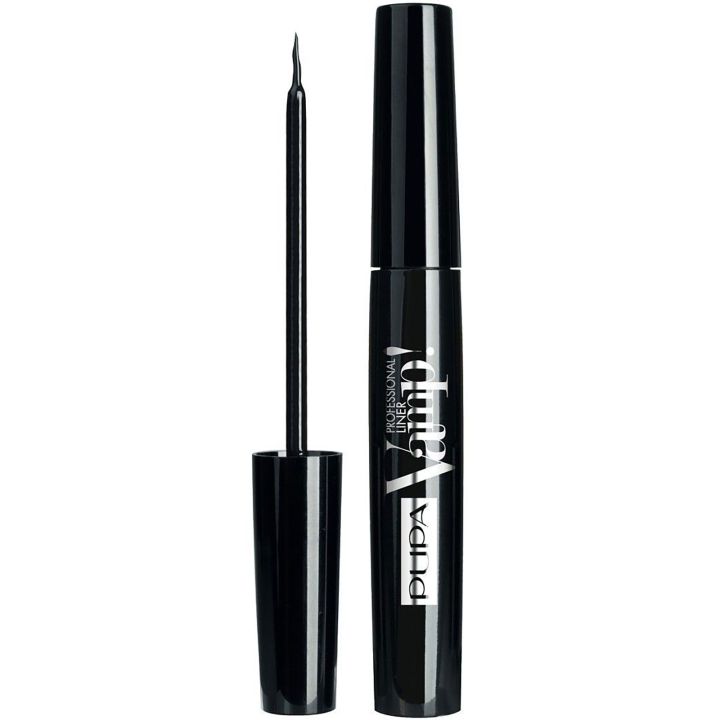 Met de Pupa Vamp! Professional Liner kun je gemakkelijk een zeer dunne, intense en heldere lijn aanbrengen. De formule heeft een plastic textuur die goed hecht, snel droogt, watervast is en een glossy-effect geeft. Met ultrafijne penseel-applicator kan de eyeliner met uiterste precisie worden aangebracht en blijft deze de hele dag perfect zitten, net als een professionele eyeliner.